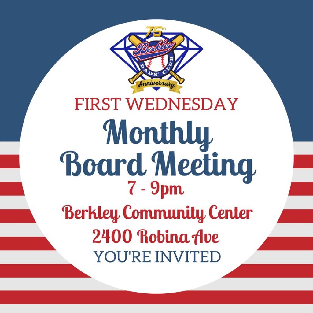 Our Berkley Dads' Club Board of Directors meet every first Wednesday of the month @ 7pm at the Community Center - 2400 Robina. All members are invited!...that means you! We are always looking for fresh perspectives and more hands willing to help out. With 500 players in our league season after season, the only thing limiting our ability to perpetuate positive change in our city is the willingness of our members to volunteer. We're often asked how to become a BDC member, but the great news is, if your kid plays BDC ball, you're already a member! Welcome to our BDC Family!